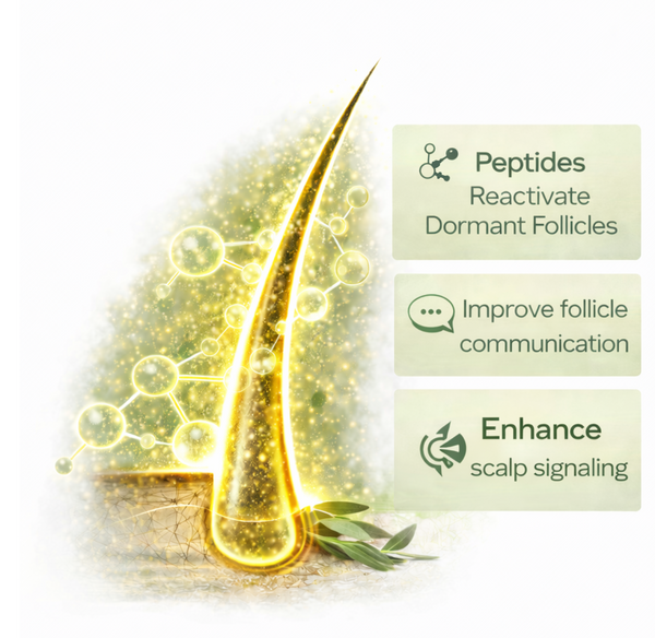 Peptides don't make hair grow back like a medication does. They help the environment and send signals that help hair grow better.