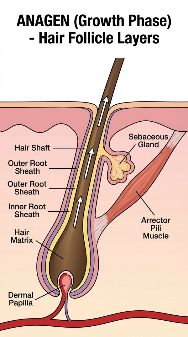 Anagen (growth phase) → growth that is happening right now
